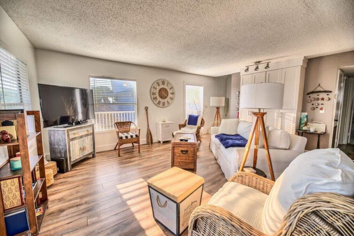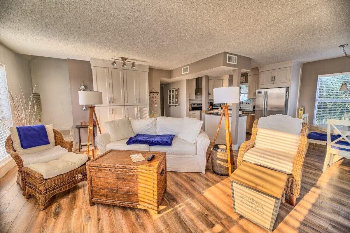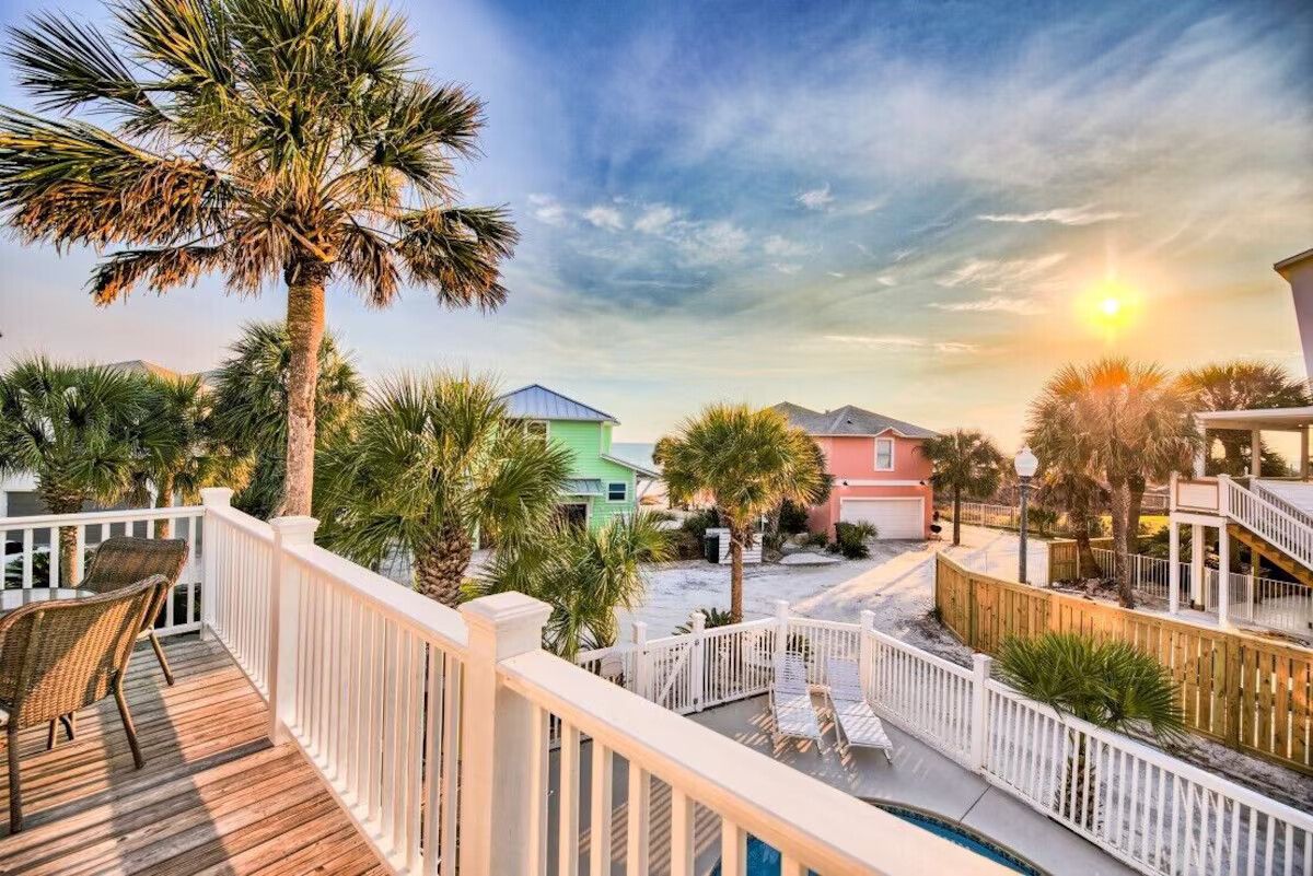 This beach house is set back from two beach front homes and has multiple views of the beach and gulf. From the deck of this house to having your toes in the beach sand will take about 1 minute. This feels beach front.